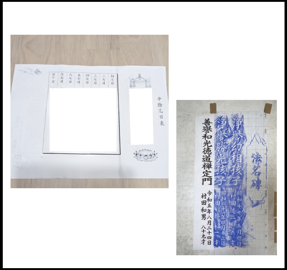 →中陰逮夜表、忌日表、お位牌などの写真があるとスムーズに対応ができます。
